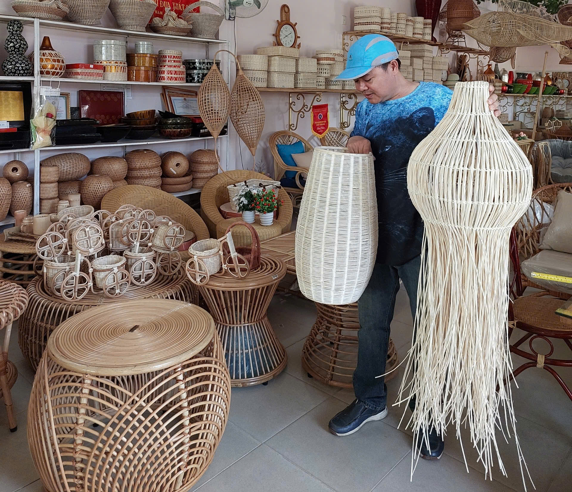 Xưởng đèn lồng Tú Phương với nhiều năm kinh nghiệm thiết kế và đội ngũ thợ lành nghề chuyên gia công, sản xuất đèn định dạng cho các thương hiệu, đèn vải thả trần cao cấp, đèn sắt nghệ thuật, đèn để bàn và ốp tường..., bảo hành thay vải đèn khung sắt đã cũ.